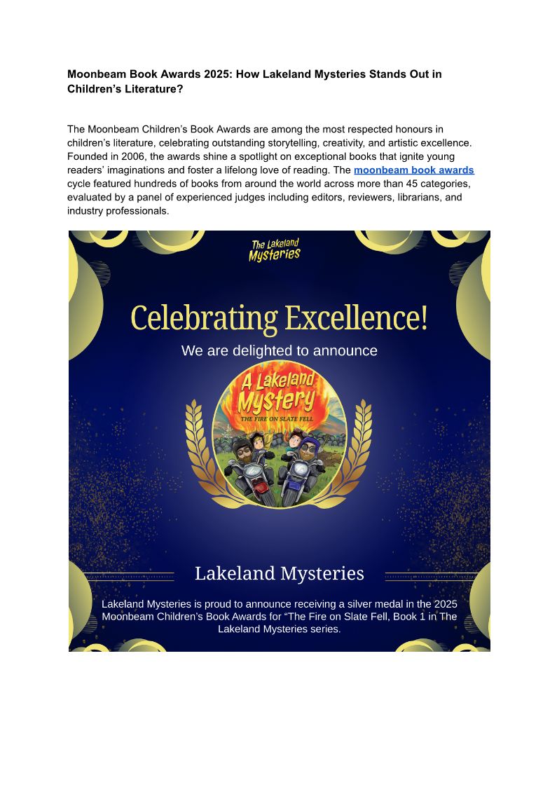 Moonbeam Book Awards 2025-- How Lakeland Mysteries Stands Out in Children’s Literature