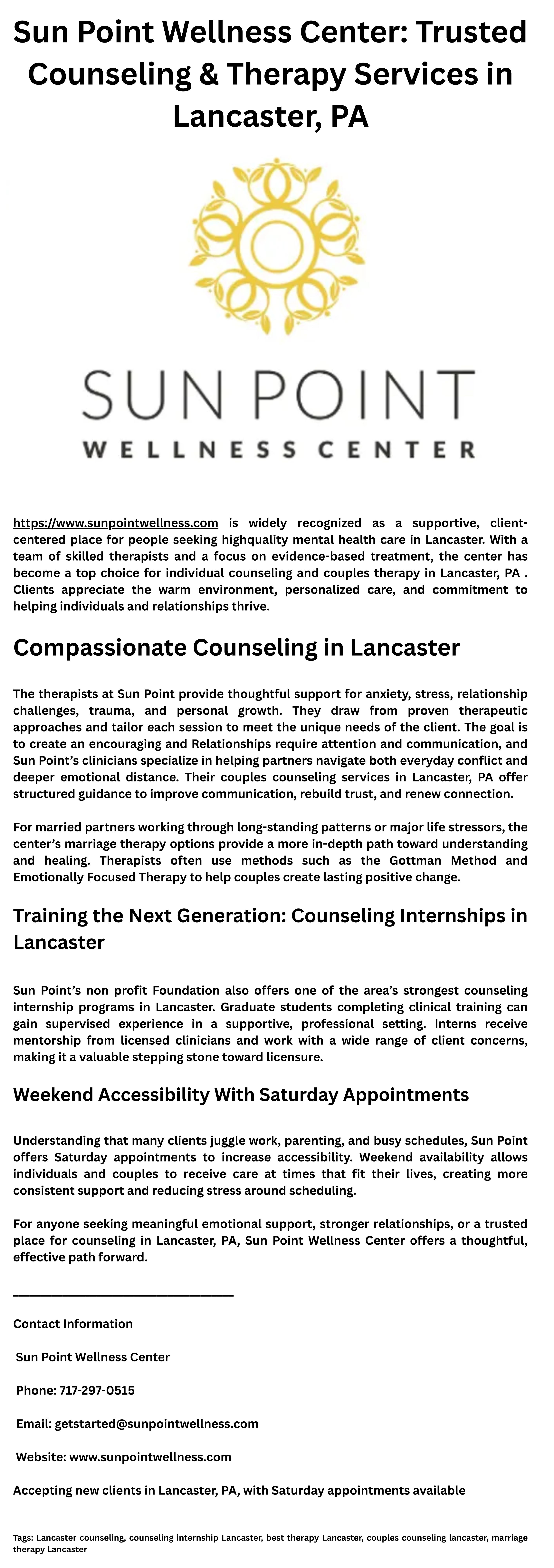 Sun Point Wellness Center Trusted Counseling & Therapy Services in Lancaster, PA
