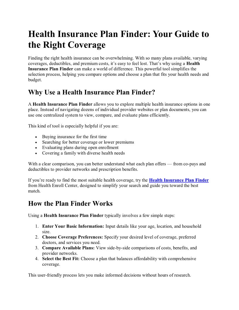 Health Insurance Plan Finder, Your Guide to the Right Coverage