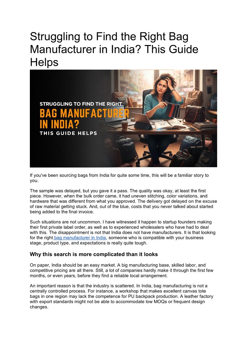 Struggling to Find the Right Bag Manufacturer in India? This Guide Helps