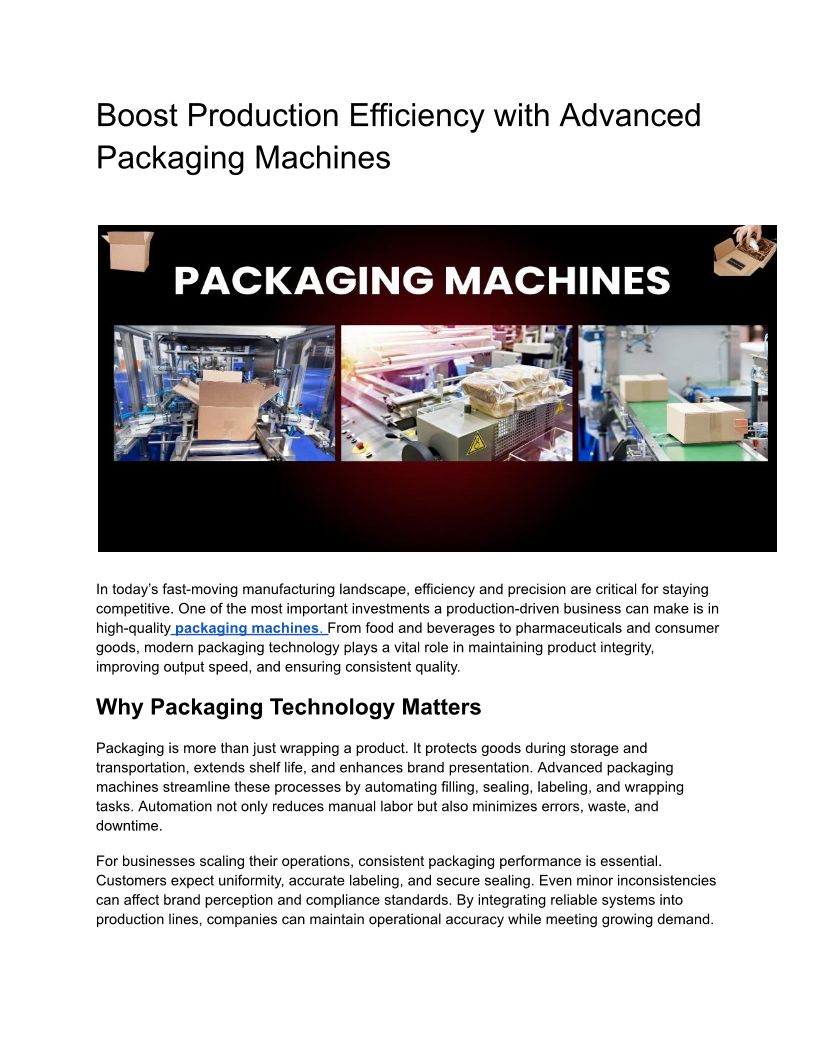 Boost Production Efficiency with Advanced Packaging Machines