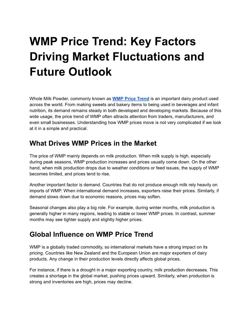 WMP Price Trend: Key Factors Driving Market Fluctuations and Future Outlook