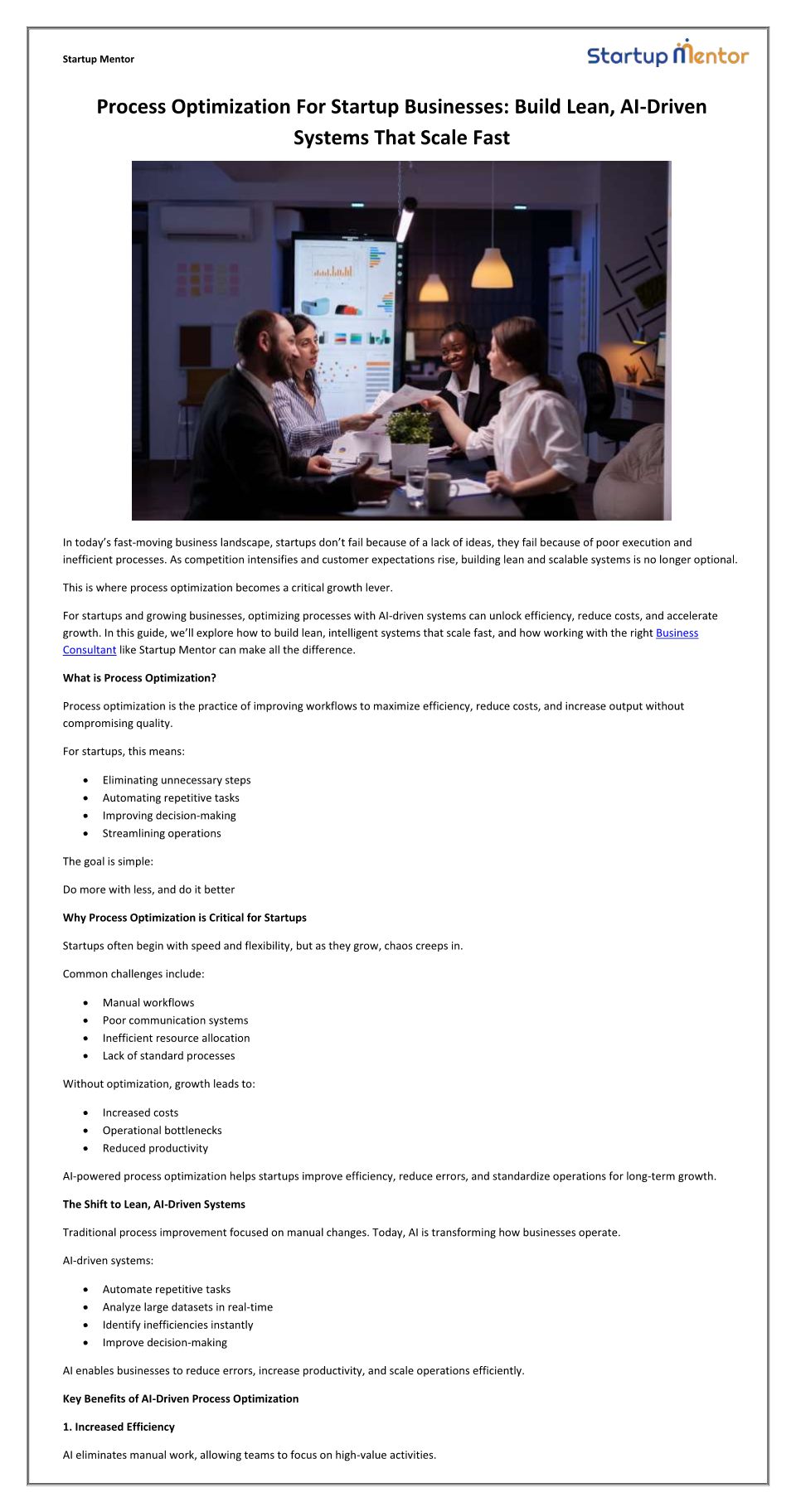 Process Optimization For Startup Businesses - Build Lean AI-Driven Systems That Scale Fast
