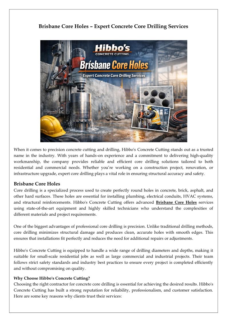Brisbane Core Holes – Expert Concrete Core Drilling Services