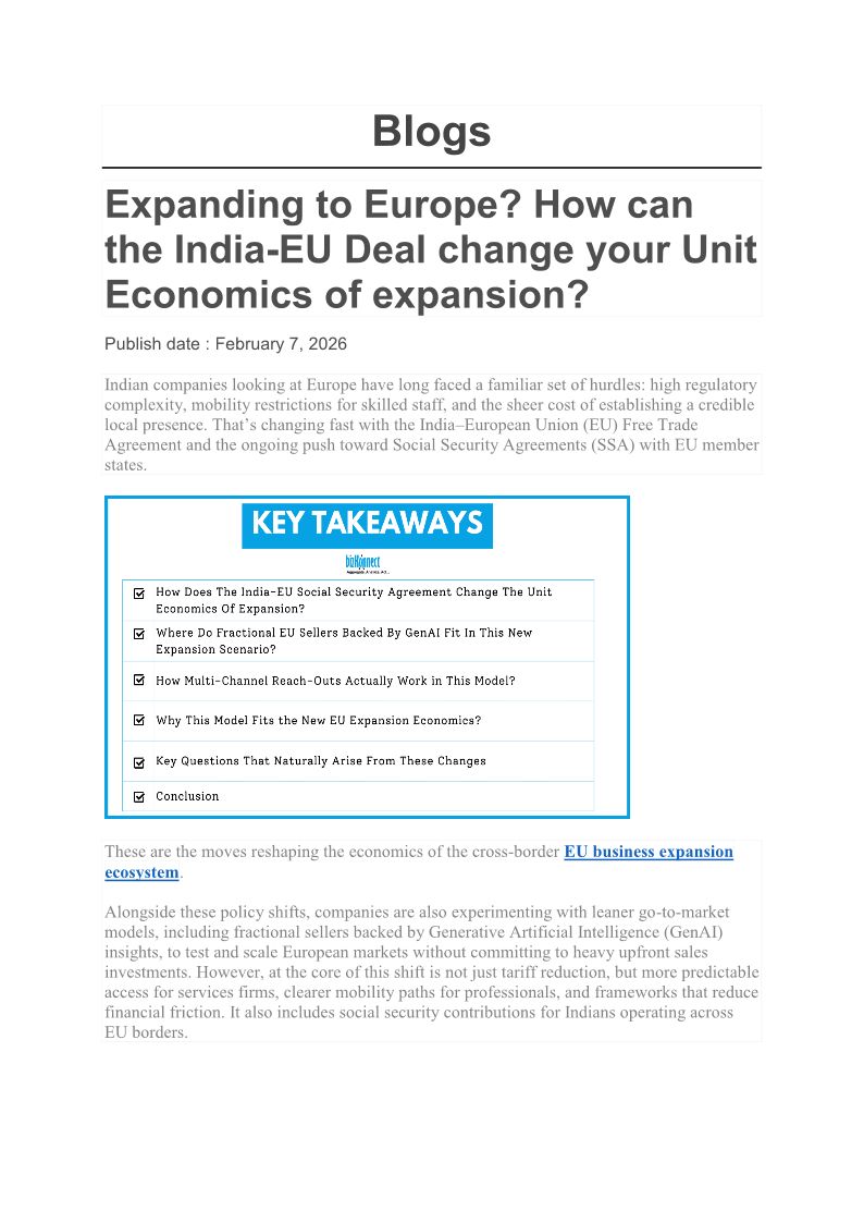 Expanding to Europe? How can the India-EU Deal change your Unit Economics of expansion?