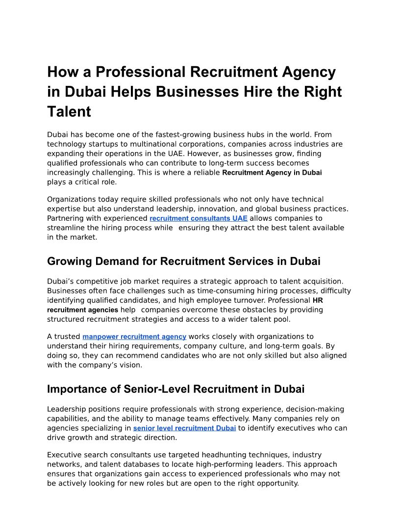 How a Professional Recruitment Agency in Dubai Helps Businesses Hire the Right Talent