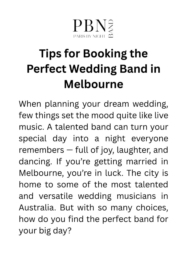 Tips for Booking the Perfect Wedding Band in Melbourne