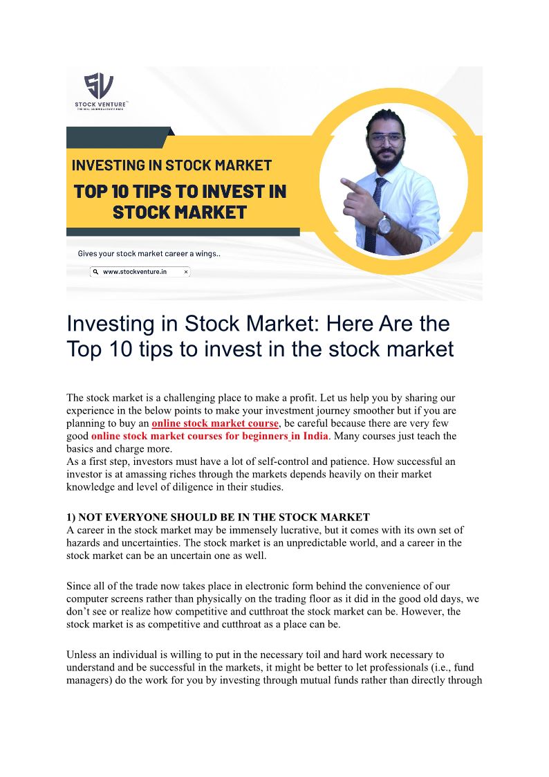 Investing in Stock Market Here Are Top 10 tips to invest in stock market