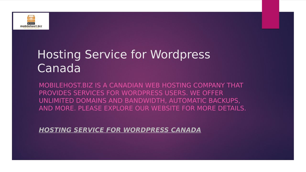 Hosting Service for Wordpress Canada Mobilehost.biz