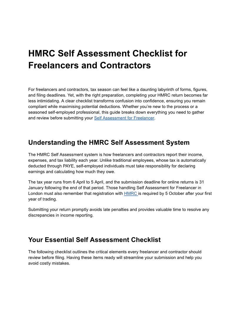 HMRC Self Assessment Checklist for Freelancers and Contractors