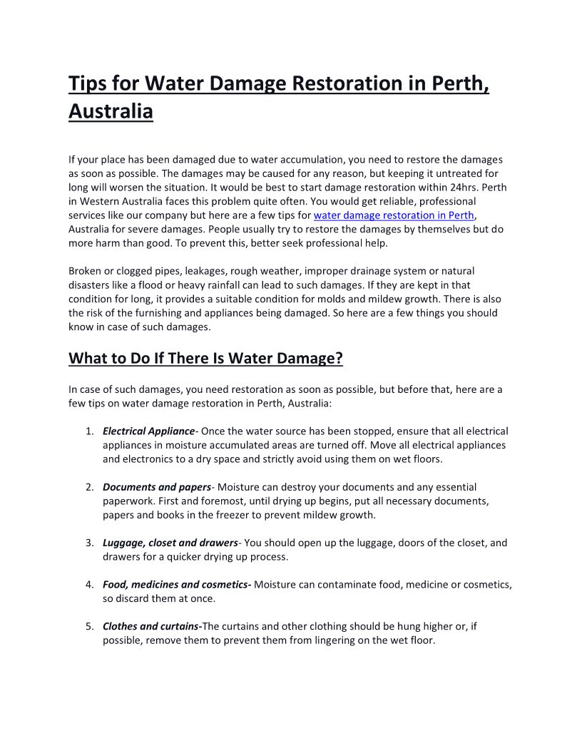 Tips for Water DaEmergency Response in Perthmage Restoration in Perth