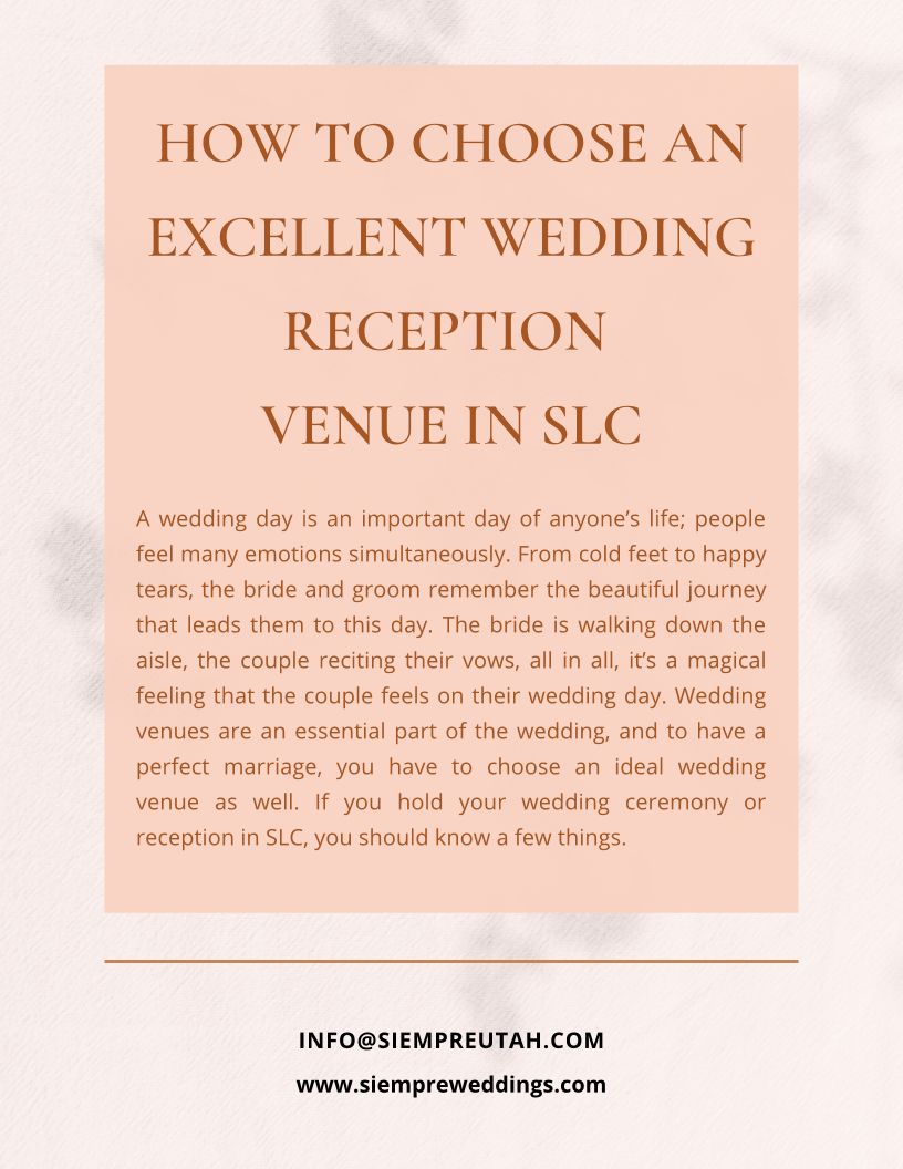 HOW TO CHOOSE AN EXCELLENT WEDDING RECEPTION VENUE IN SLC