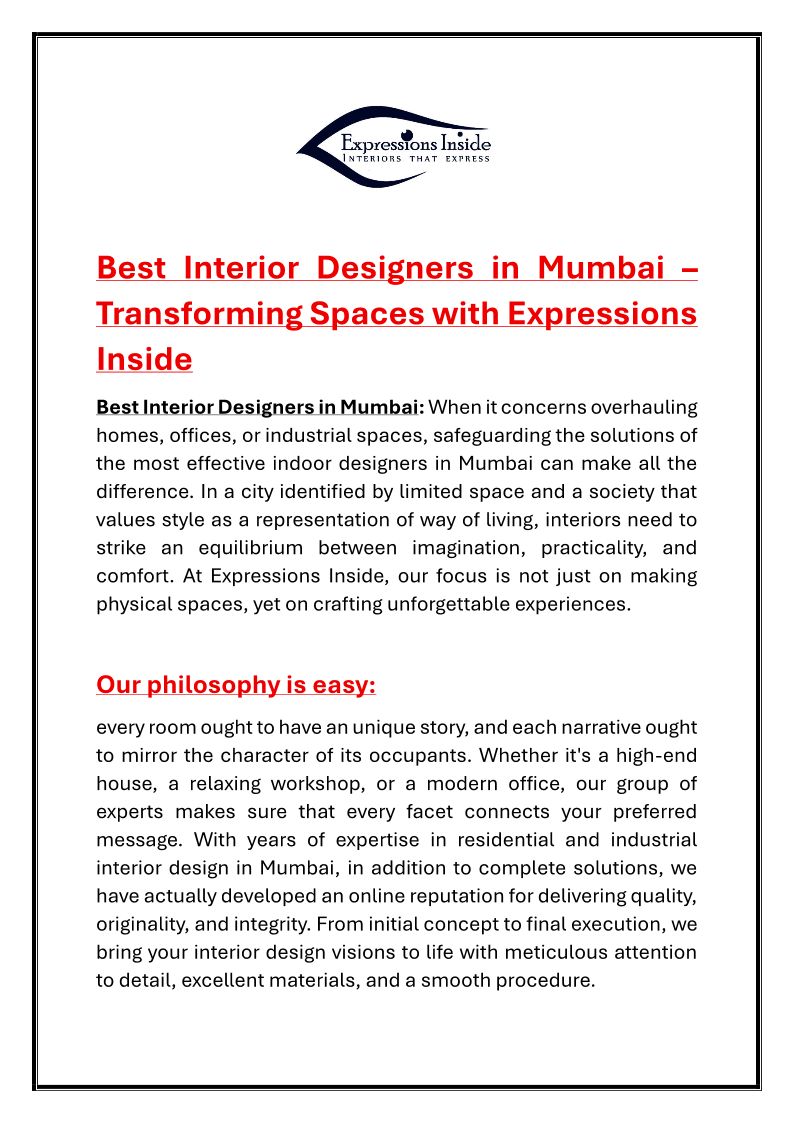 Best Interior Designers in Mumbai – Transforming Spaces with Expressions Inside