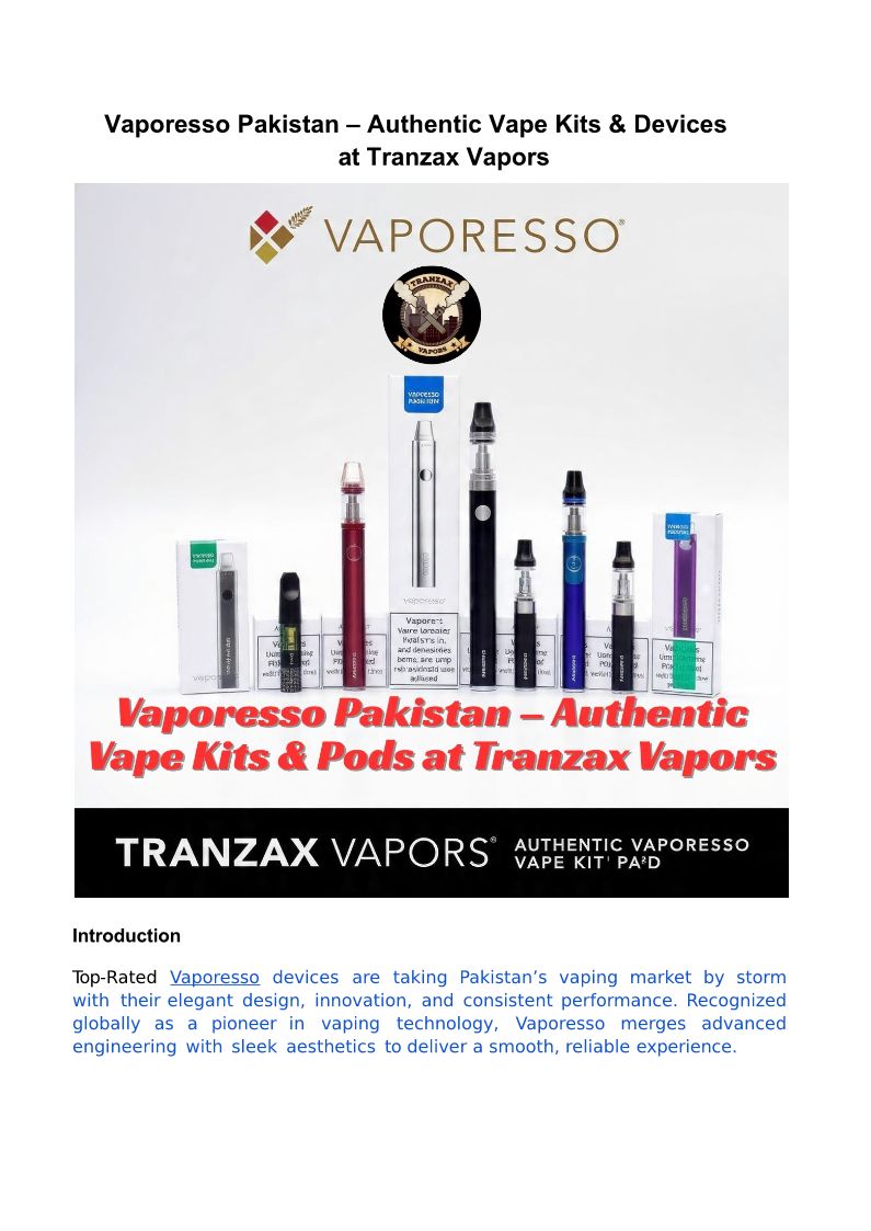 Vaporesso Pakistan – Authentic Vape Kits & Devices at Tranzax Vapors