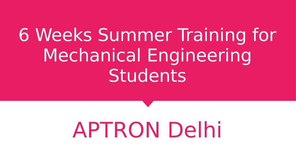 6 Weeks Summer Training for Mechanical Engineering Students- APTRON Delhi