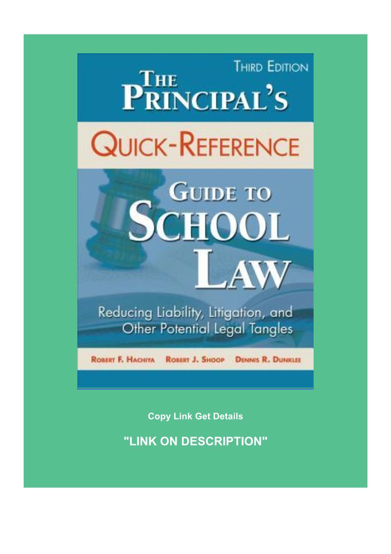 [Doc] The Principal's Quick-Reference Guide to School Law: Reducing Liability, Litigation, and Other Potential Legal Tangles Full