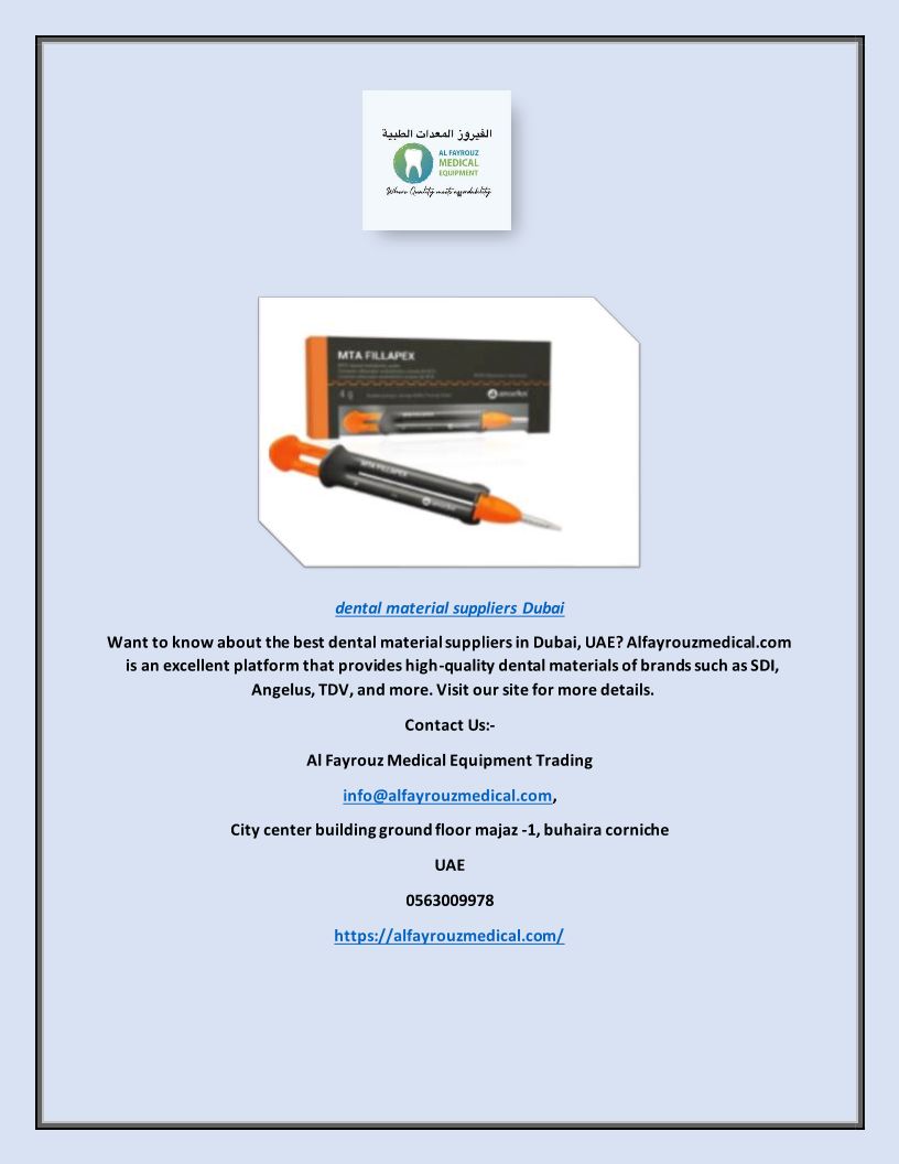 Dental Material Suppliers Dubai | Alfayrouzmedical.com