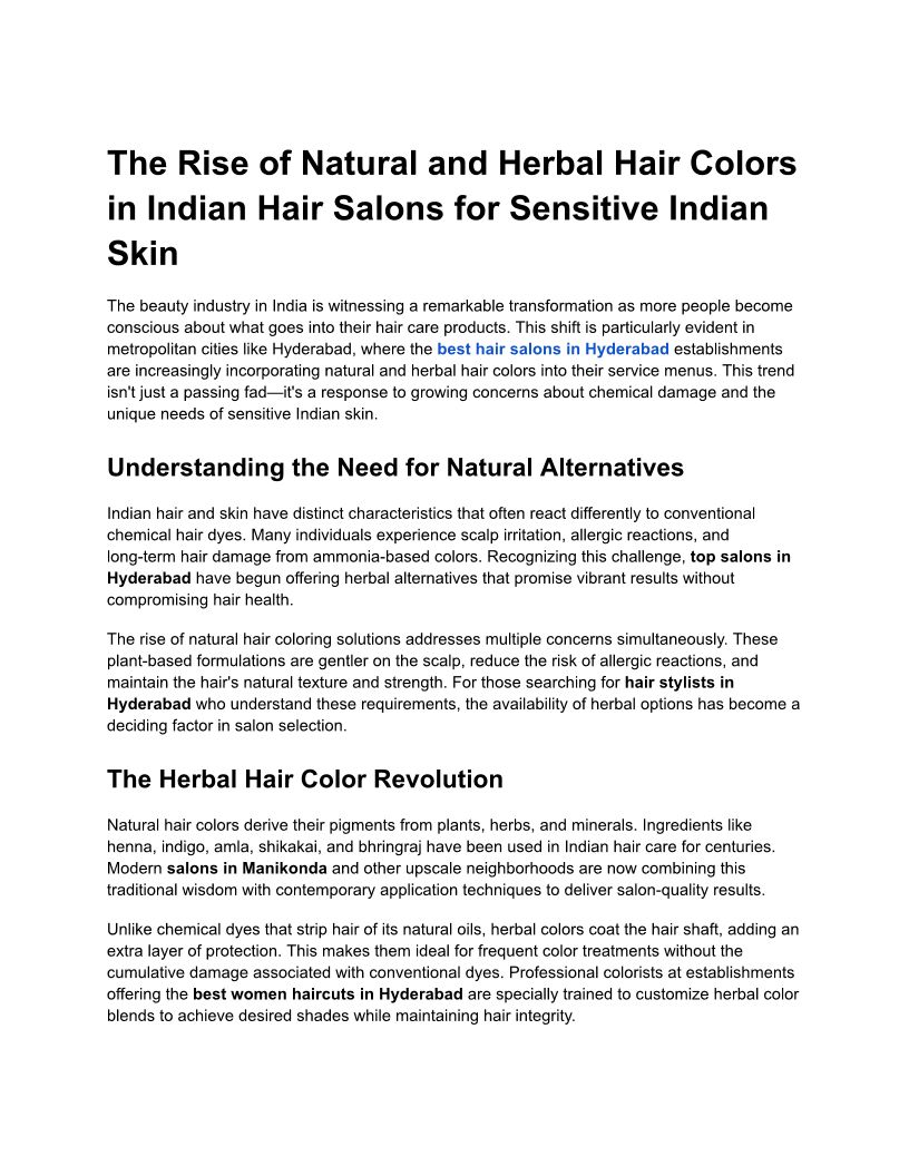 The Rise of Natural and Herbal Hair Colors in Indian Hair Salons for Sensitive Indian Skin