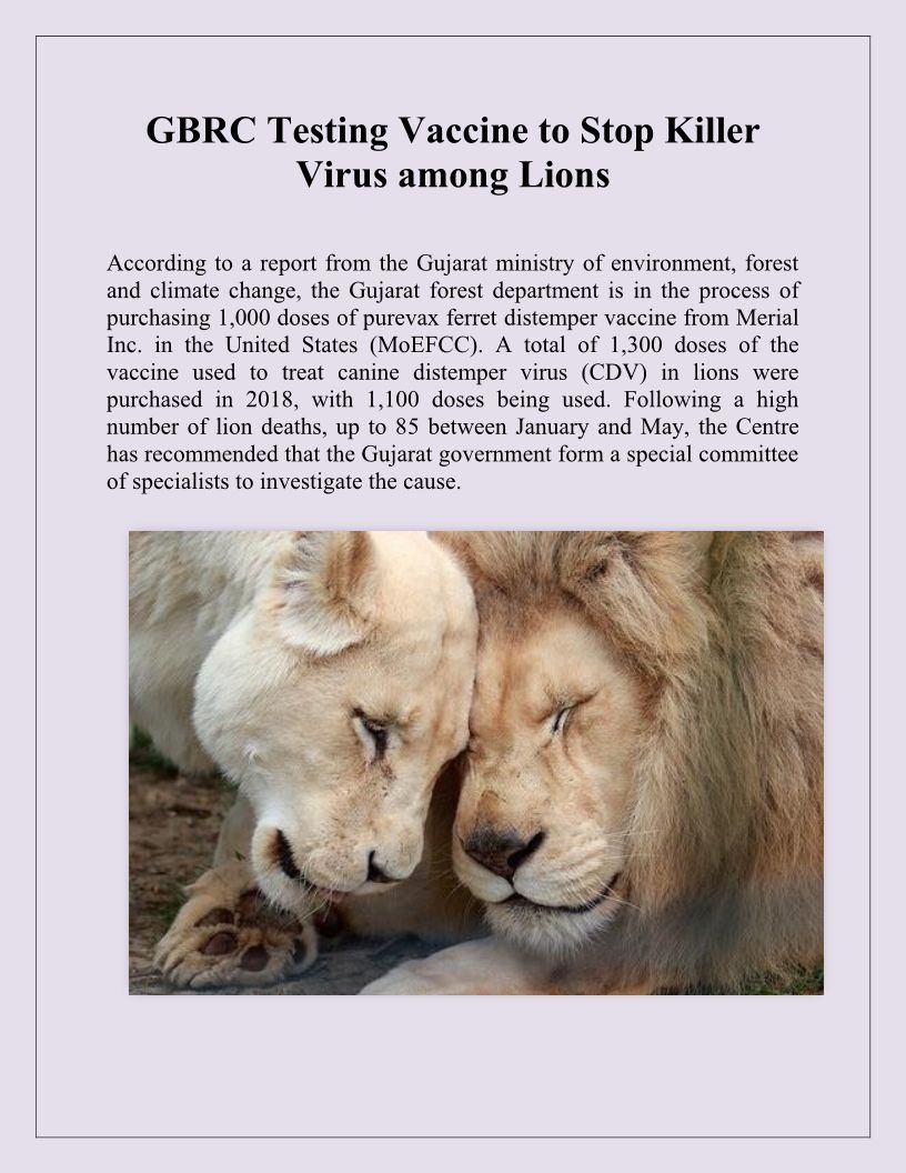 GBRC Testing Vaccine to Stop Killer Virus among Lions