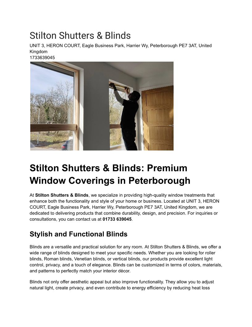 Stilton Shutters & Blinds: Premium Window Solutions in Peterborough