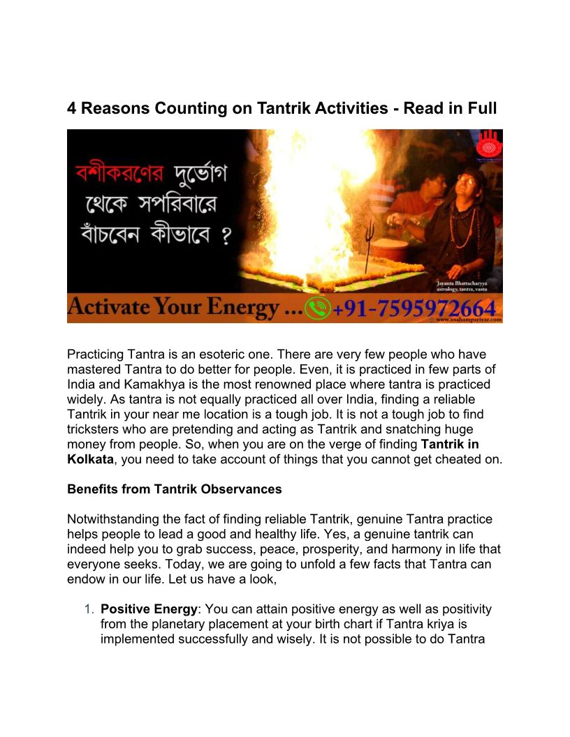 4 Reasons Counting on Tantrik Activities - Read in Full