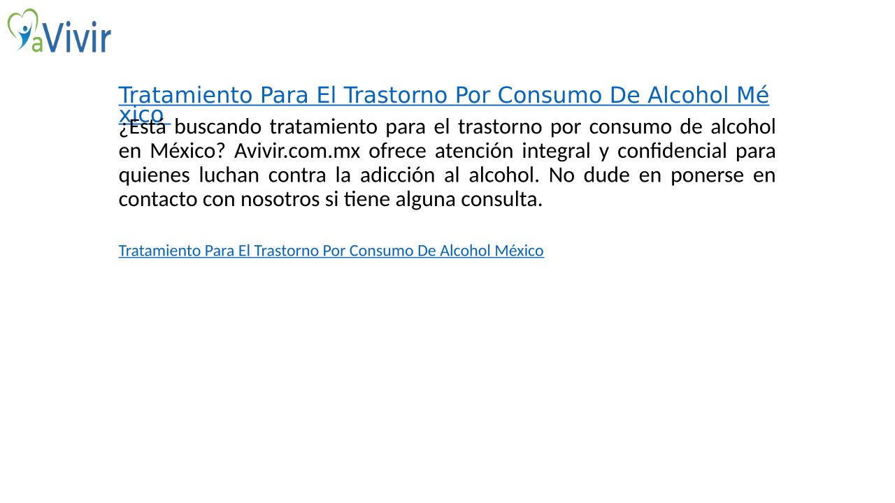 Tratamiento Para El Trastorno Por Consumo De Alcohol México Avivir.com.mx