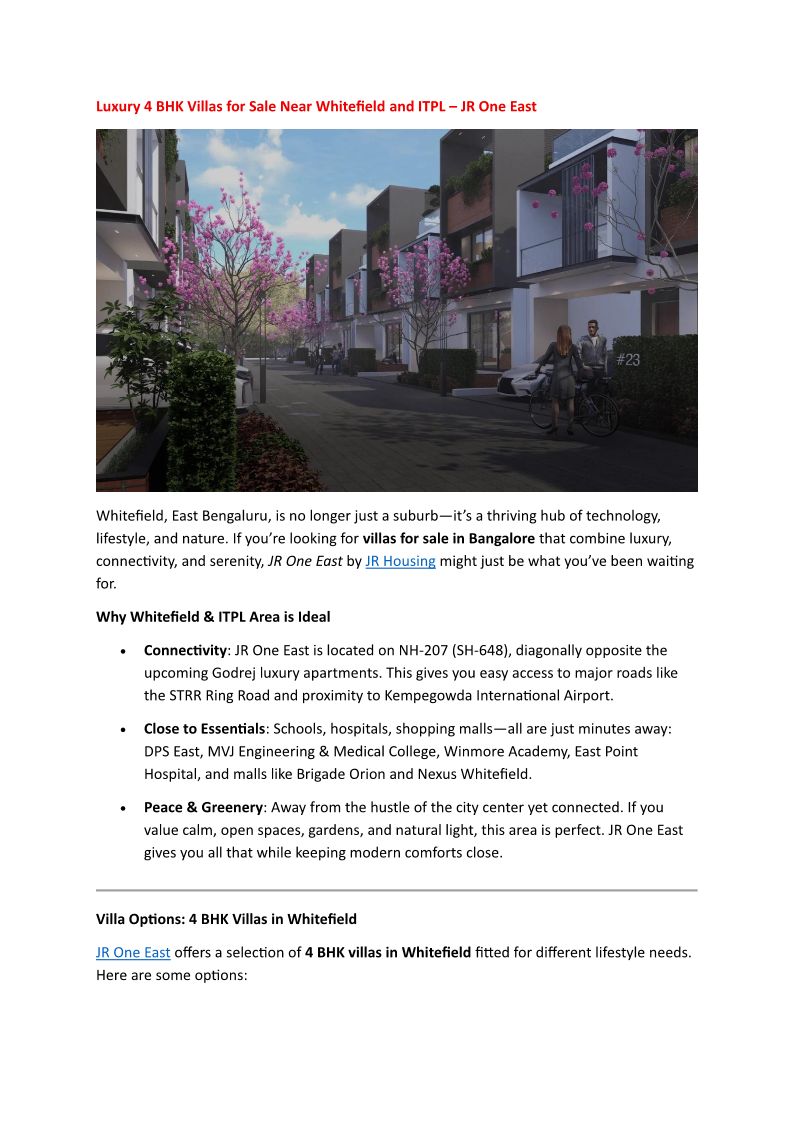Luxury 4 BHK Villas for Sale Near Whitefield and ITPL – JR One East