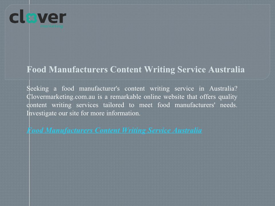Food Manufacturers Content Writing Service Australia Clovermarketing.com.au