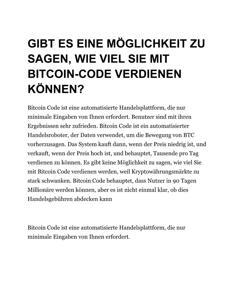 GIBT ES EINE MÖGLICHKEIT ZU SAGEN, WIE VIEL SIE MIT BITCOIN-CODE VERDIENEN KÖNNEN