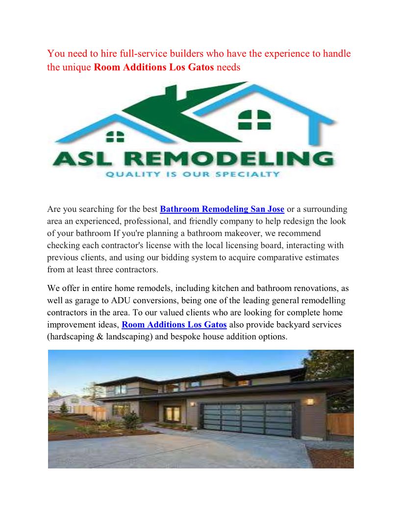 You need to hire full-service builders who have the experience to handle the unique Room Additions Los Gatos needs