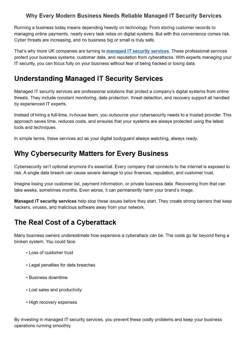 Why Every Modern Business Needs Reliable Managed IT Security Services