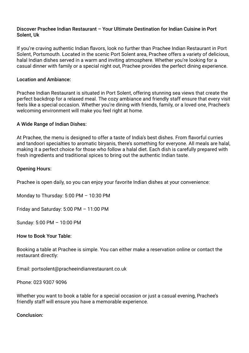 Title: Prachee Port Solent – Authentic Indian Restaurant in the UK