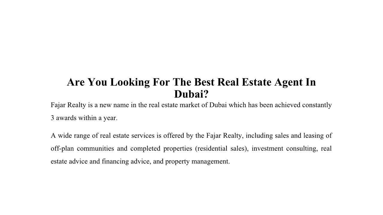 Are You Looking For The Best Real Estate Agent In Dubai ?