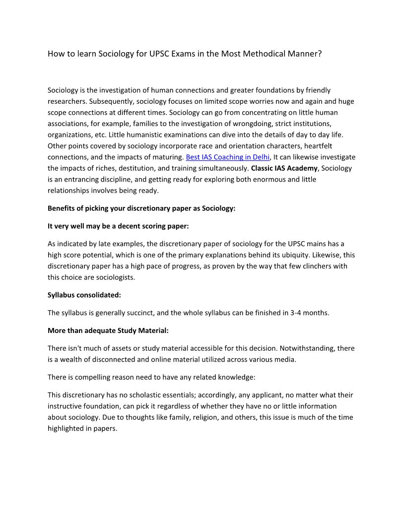 How to learn Sociology for UPSC Exams in the Most Methodical Manner
