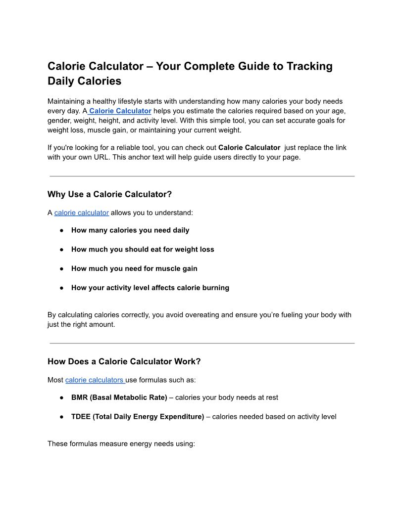 Calorie Calculator – Your Complete Guide to Tracking Daily Calories