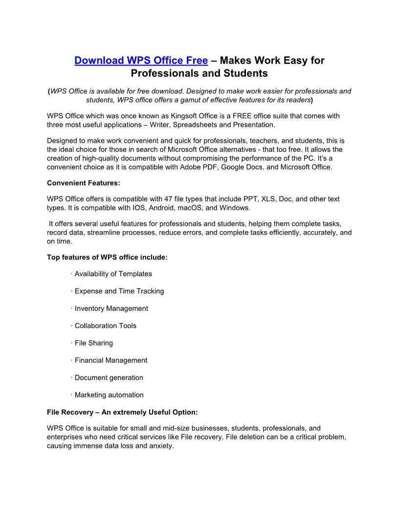 Download WPS Office Free – Makes Work Easy for Professionals and Students