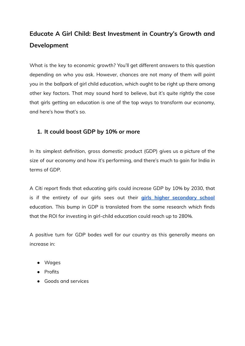 Educate a Girl Child Best Investment in Country's Growth and Development