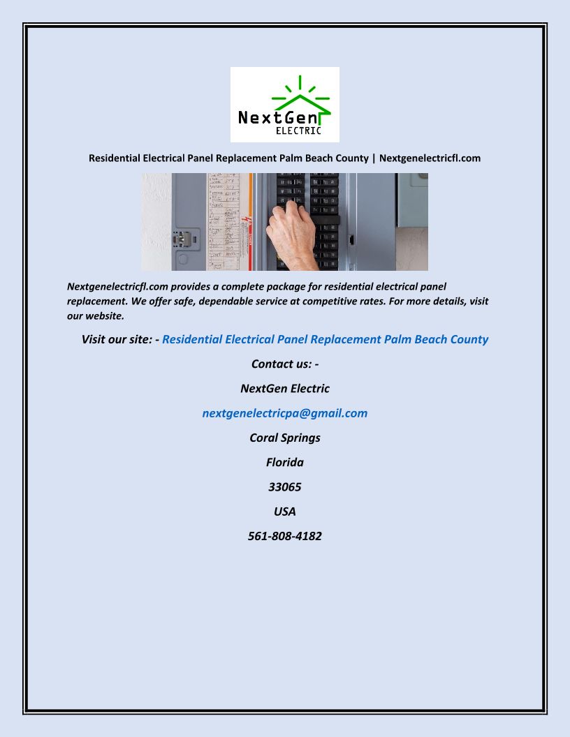 Residential Electrical Panel Replacement Palm Beach County Nextgenelectricfl com
