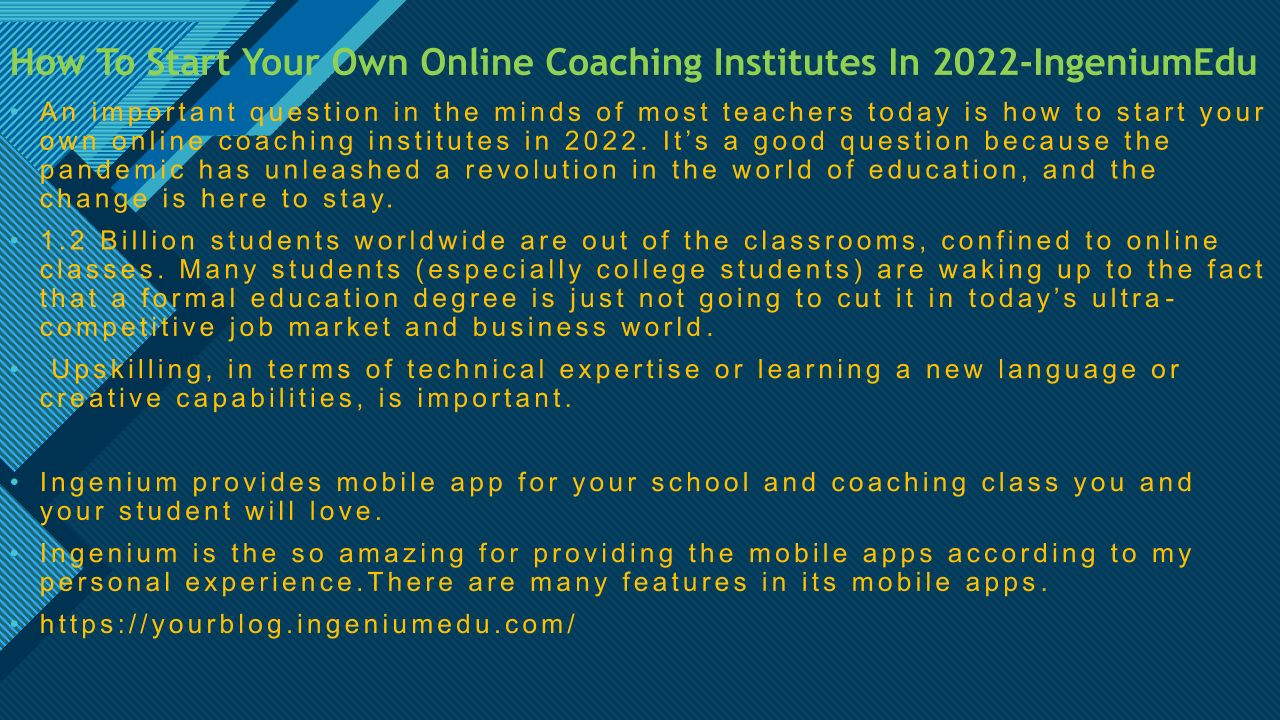 How To Start Your Own Online Coaching Institutes In 2022-IngeniumEdu