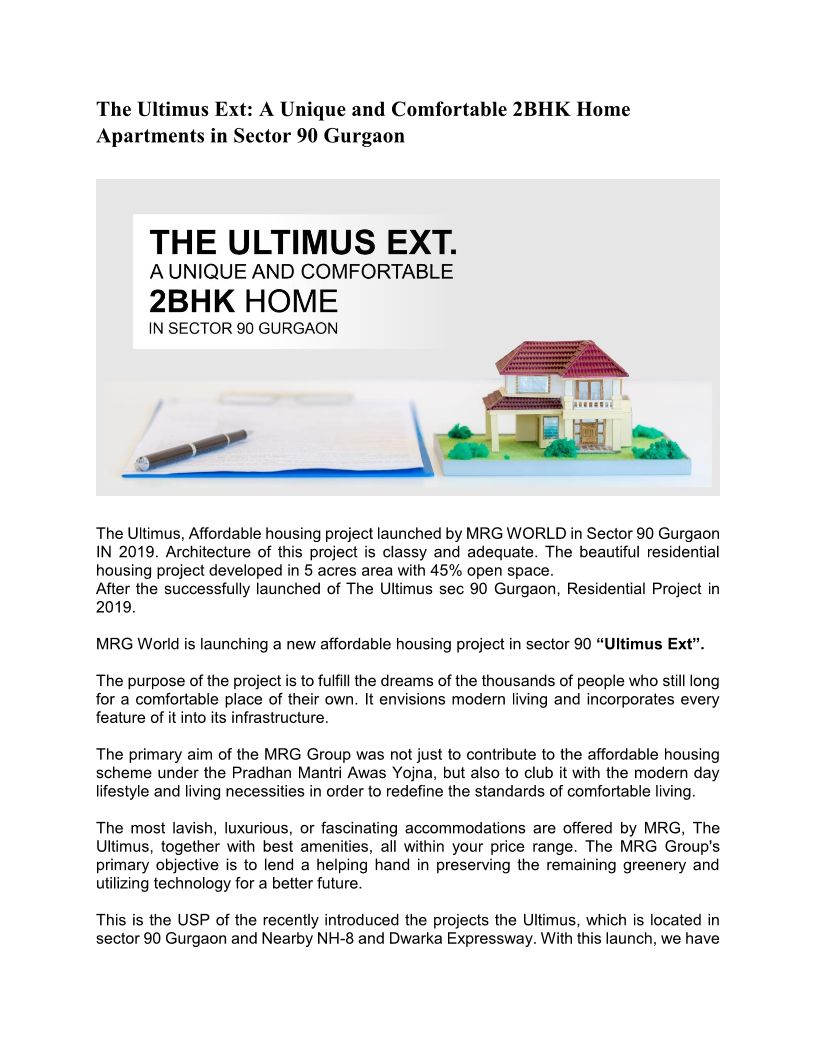 The Ultimus Ext: A Unique and Comfortable 2BHK Home Apartments in Sector 90 Gurgaon