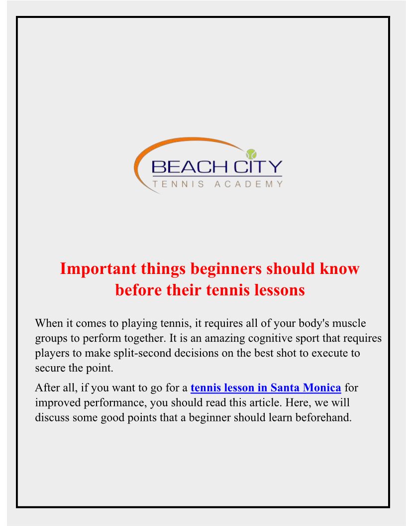Best Tennis Lessons in Santa monica | Beachcitytennis