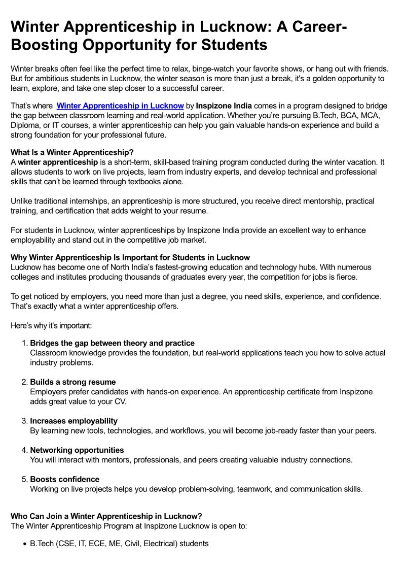 Career Growth Starts Here: Winter Apprenticeship in Lucknow for Students