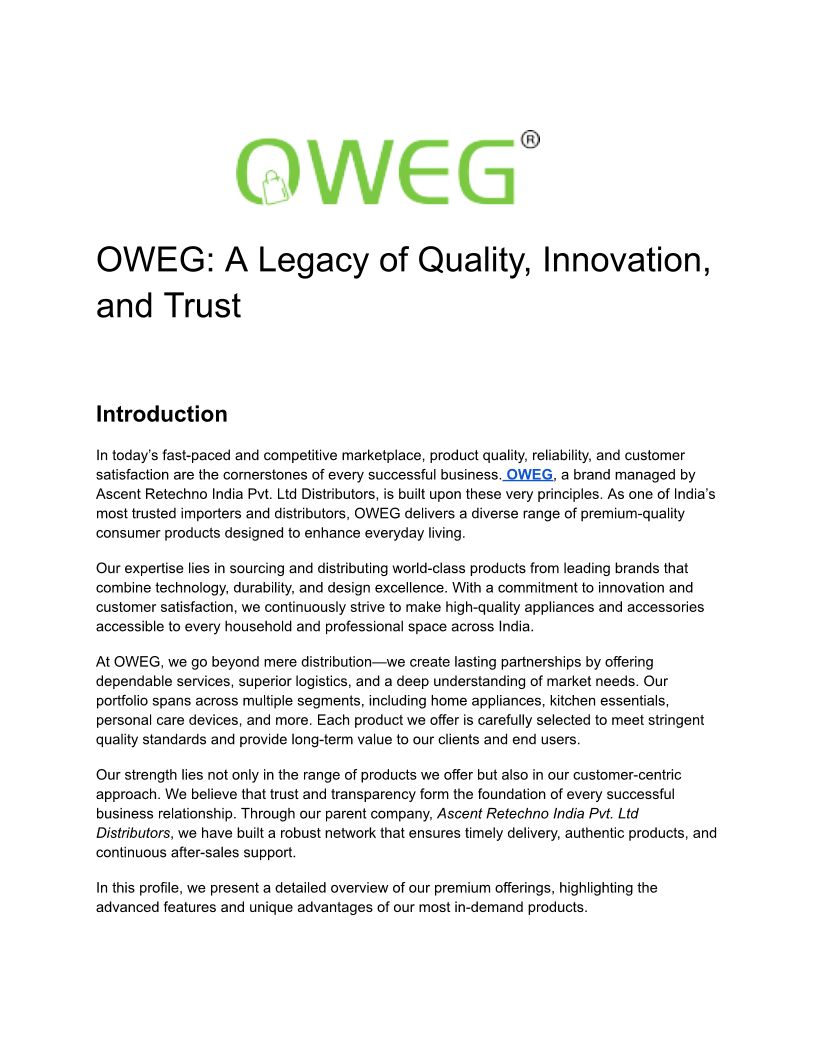 OWEG_ A Legacy of Quality, Innovation, and Trust