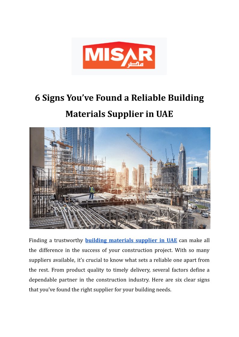 6 Signs You’ve Found a Reliable Building Materials Supplier in UAE
