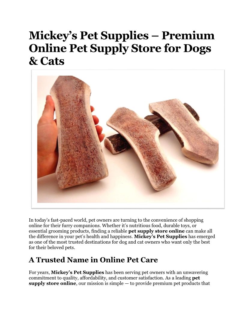 Mickey’s Pet Supplies | Premium Online Pet Supply Store for Dogs & Cats