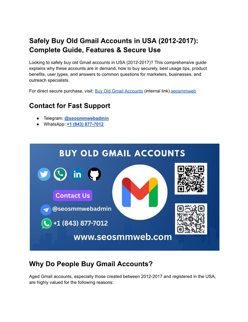 Safely Buy Old Gmail Accounts in USA (2012-2017)