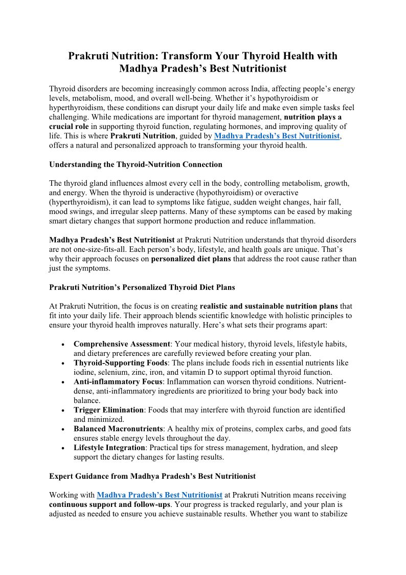 Prakruti Nutrition Transform Your Thyroid Health with Madhya Pradesh’s Best Nutritionist