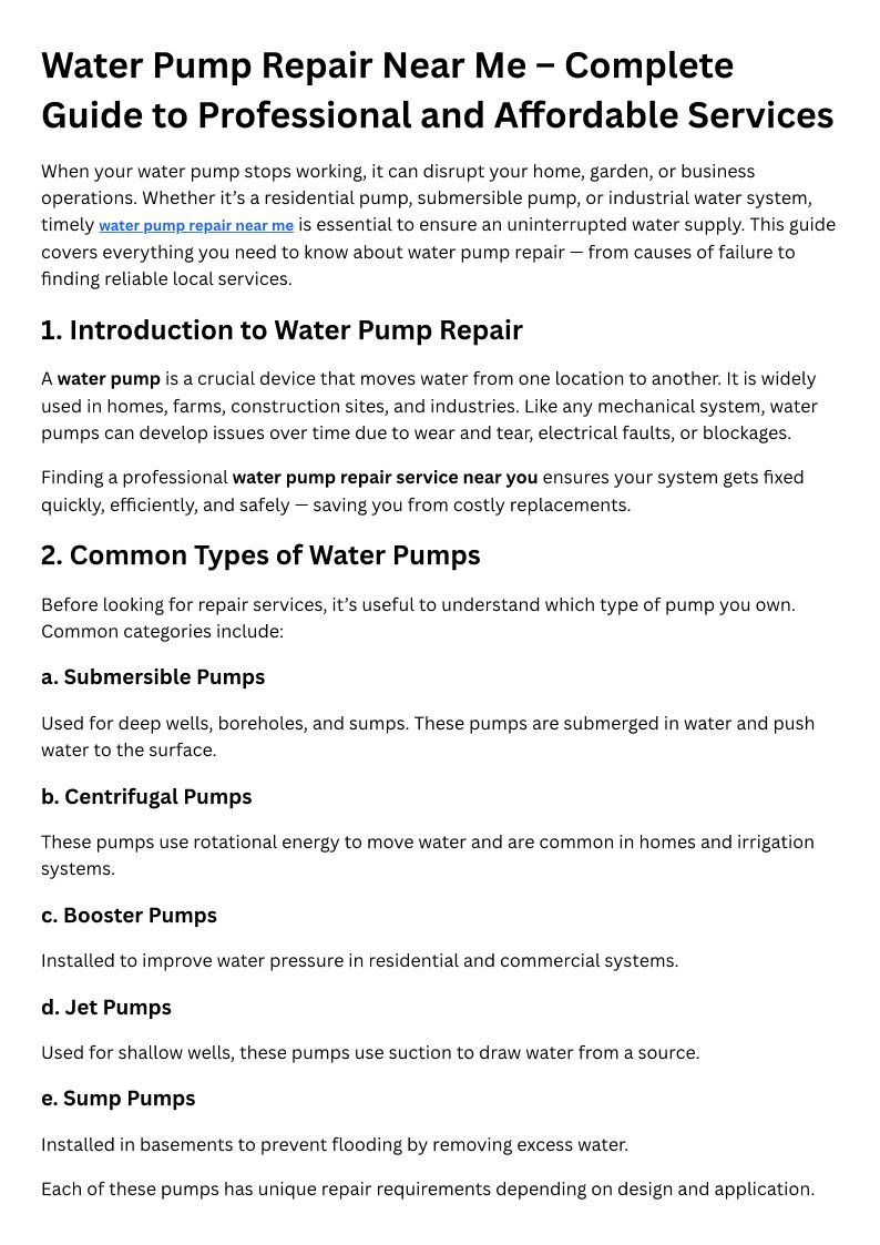 Water Pump Repair Near Me – Complete Guide to Professional and Affordable Services