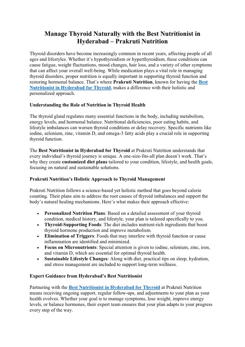 Manage Thyroid Naturally with the Best Nutritionist in Hyderabad – Prakruti Nutrition