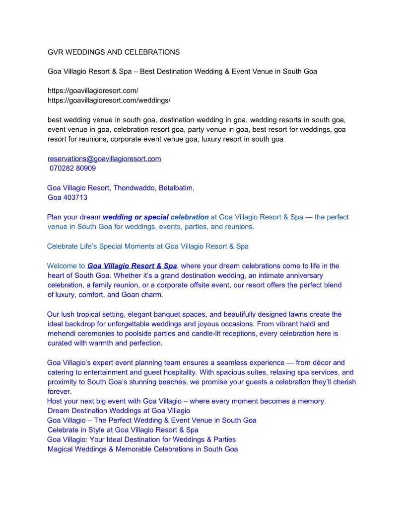 Goa Villagio Resort & Spa – Best Destination Wedding & Event Venue in South Goa